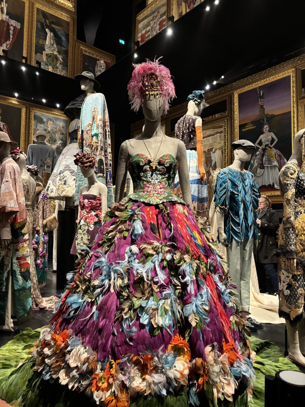 Il percorso espositivo, per la sua maestosità e originalità, riesce a sorprendere i visitatori in ogni sala: nella prima, per esempio, oltre a favolosi abiti, parure di gioielli e accessori appartenenti a varie collezioni passate, sono collocati diversi dipinti e ritratti realizzati tra il 2012 e il 2024 da Anh Duong, ispirati dalla linea di Alta Moda di D&G Gran Tour sulle maggiori città dello Stivale e a personaggi del jet set che seguono da sempre i couturier.