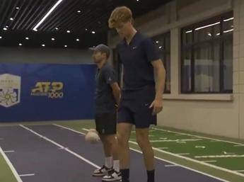 Jannik Sinner fuoriclasse anche con il pallone tra i piedi. Il numero 2 del ranking Atp è stato ‘pizzicato’ dalle telecamere delle tv prima del match contro l’olandese Tallon Griekspoor a Shanghai, in una fase molto rilassata del riscaldamento. Nel filmato, diventato già virale sui social, Jannik ruba una pallina a coach Simone Vagnozzi e inizia a palleggiare. Ovviamente, senza mai far cadere la palla a terra. La curiosità? Vagnozzi quasi non si accorge del momento e resta fisso con lo sguardo in avanti, probabilmente intento a guardare il match tra Novak Djokovic e Yannick Hanfmann, scesi in campo prima dell’azzurro.